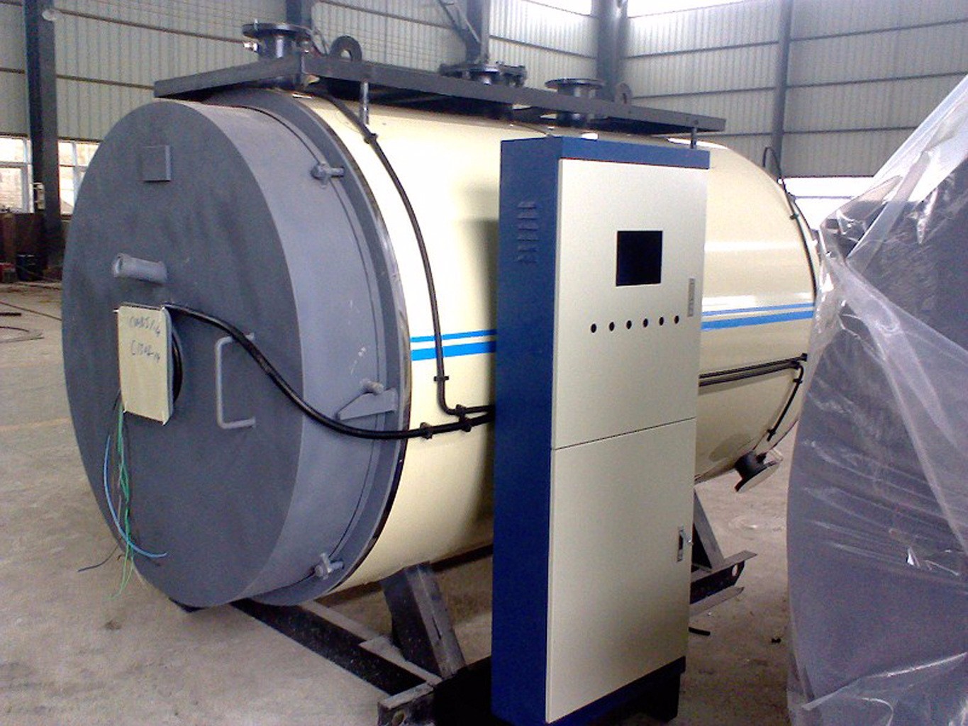 該產(chǎn)品屬臥式大功率蒸汽鍋爐,采用爐體電控制柜分離方式,避免了電器元件受熱老化而影響使用壽命。電熱管選用國內(nèi)外**產(chǎn)品、正常使用壽命約20000小時,熱效率近**,運行安靜、清潔,符合環(huán)保的要求,不會向大氣排放NOx(氮氧化合物)。運行采用PLC控制系統(tǒng),全免操作鈕、全免指示燈、觸摸屏面板、中英文顯示、人機對話、操作授權(quán)、實時信息、自動翻頁。